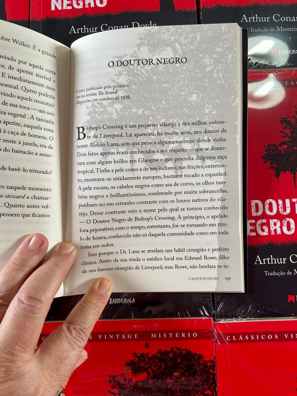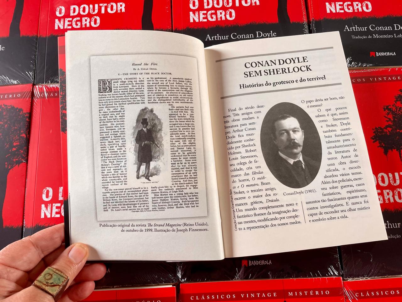 Minha afeição pelo escritor escocês Conan Doyle nasceu exclusivamente da série de livros com as aventuras de Sherlock Holmes. Li todas as obras relacionadas ao meu detetive favorito e assisti a muitos filmes e séries inspirados na personagem. Nada mais natural, portanto, que eu me engajasse na campanha de financiamento coletivo para a reedição do livro 𝑂 𝑑𝑜𝑢𝑡𝑜𝑟 𝑛𝑒𝑔𝑟𝑜, lançado pela Editora Bandeirola em junho deste ano.